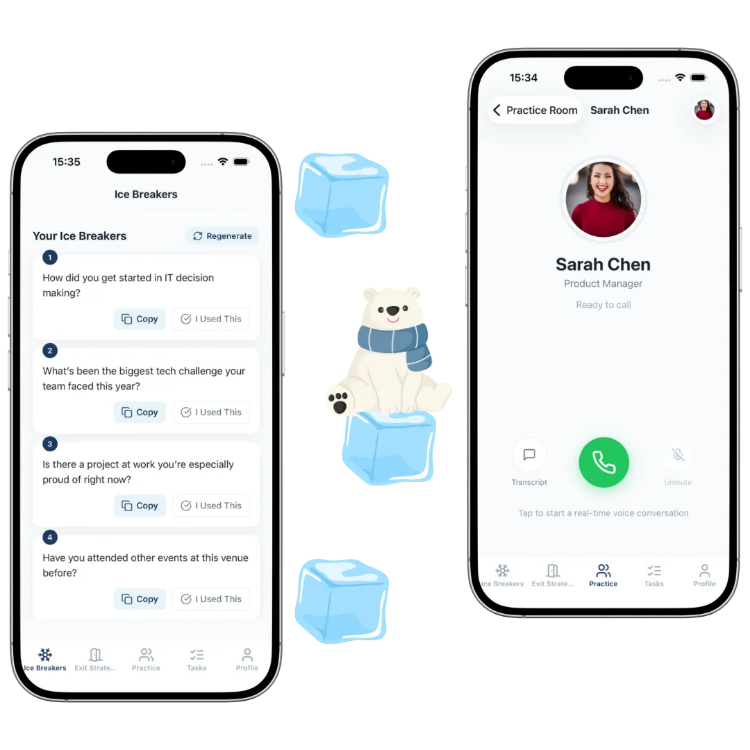 Break the ice. Build real connections. Never feel awkward at a networking event again. Practice with AI, get personalized ice breakers, and crush every conversation.